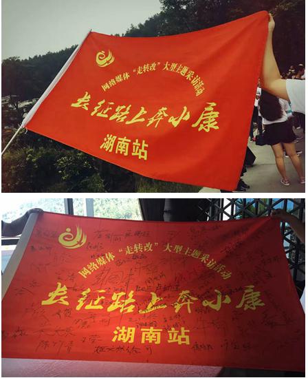 在湖南站启动仪式结束后,采访团成员在红旗上郑重地签下自己的名字,红旗从崭新的一面到被签满承诺,只用了短短的五天,但履行这个承诺,每个人也许都要为之奋斗一生。这一行,有风吹雨淋、有日头暴晒,有山路崎岖、有泥泞难行,但最终的结果却都是攻坚克难,取得成功,就像长征,就像脱贫,只要为之付出不懈努力,终究都会实现。湖南之行结束了,但对于采访团的成员们来说,对脱贫攻坚这一新长征的关注并未止步,这是责任,更是一份沉甸甸的情感与期待。正如中央网信办网络新闻信息传播局副局长刘冲在启动仪式上的讲话中强调的那样:八十年后的今天来到三湘大地重走长征路,追寻长征的足迹,就是要让大家不能忘记壮丽的长征史诗、不应忘却伟大的长征精神、不会忘了英雄的三湘人民。(中国网信网 徐可)