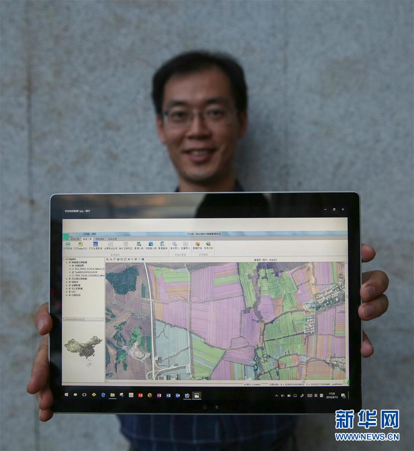 9月13日,无人机与车载一体化地面样方调查系统研发负责人史云研究员在展示天空地一体化地块大数据管理系统界面截图。