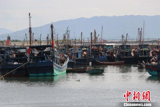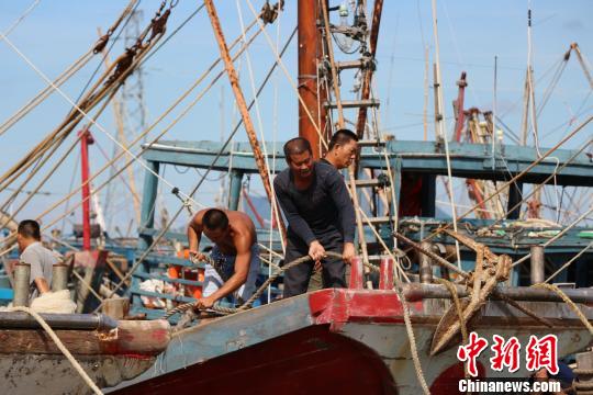 潮州三百门港渔船回港,渔民加固渔船防御台风“莫兰蒂”。 余秋松 摄