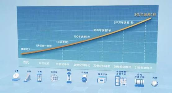 自从有了原子钟,人类计时的精度以几乎每十年提高一个数量级的速度飞速发展,20世纪末达到了10^-14量级,即误差约为1秒/300万年,在此基础上建立的全球定位导航系统(例如美国GPS),覆盖了整个地球98%的表面,将原子钟的信号广泛的应用到了人类活动的各个领域。