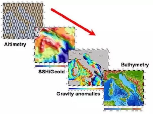 海洋水下环境往往可反映到海平面的变化上,因此微波高度计担当的另一个重任就是对海洋的水深进行测量,进而反演海底地形,它是实现海洋测绘的重要技术手段之一。