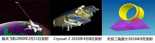“天宫二号”高度计也是国际上第三个星载双天线微波干涉雷达(第一个为2000年美国NASA开展的奋进号航天飞机SRTM的干涉SAR,第二个为2010年6月欧空局发射升空的CryoSAT/SIRAL)。