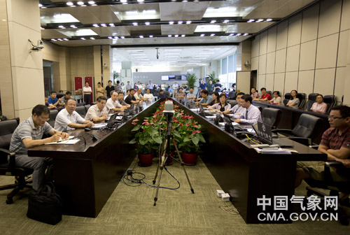 9月15日,中国气象局会商“莫兰蒂”后期风雨影响。庄白羽 摄影