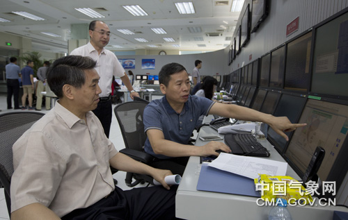郑国光在会商结束后了解台风“马勒卡”动向。庄白羽 摄影