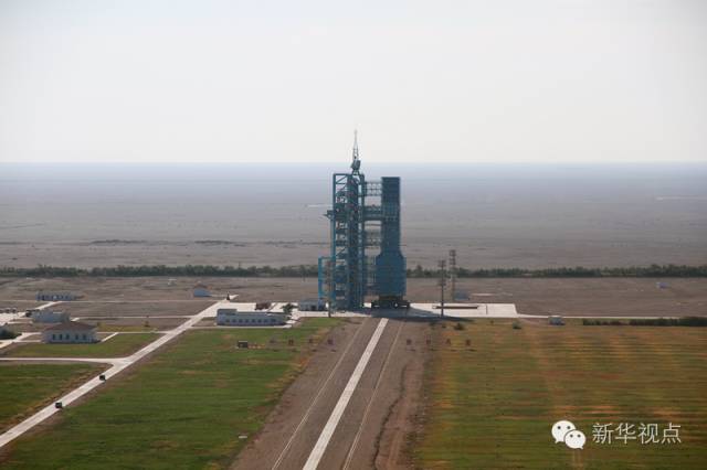 9月15日10时,长征二F运载火箭在发射塔架上蓄势待发(新华社记者 王聪摄)