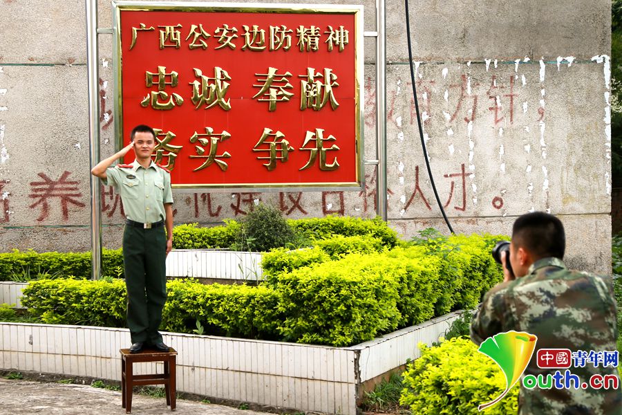 为了让远在异乡的亲人放心,检查站组织为每名官兵在中秋节前拍摄风采照。中国青年网通讯员 李杭 摄