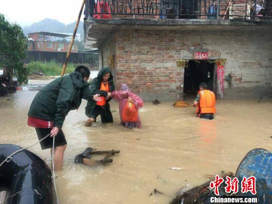 在湖洋镇镇区,30米宽的溪流洪水漫过河堤,镇区水位不断攀升,最高峰时道路上洪水达1.2米高,民房均不同程度受灾,部分土木结构的老宅出现坍塌情况。陈神聪大队长带领救援小组,携带绳索、担架、救生衣等救援工具,徒步赶赴重灾区,每逢一幢民房均详细了解附近情况,劝说滞留群众尽快撤离。