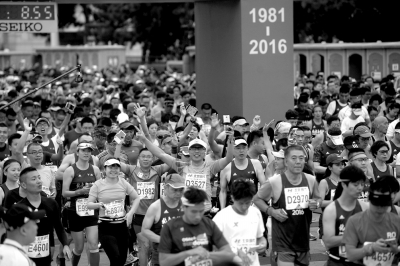 其中一位参赛者许展玮告诉记者,他今年21岁,是山东人,在清华大学自动化系读大三,大一刚入学,他经学长推荐加入校学生马拉松协会。此后,每周保持3到4次的跑步训练。今年是他第二次参加北马,“我很幸运入选了这次的比赛,去年我没有跑完全程,这一次我坚持完了比赛,成绩是3小时23分钟。”他坦言,参加马拉松让他更热爱生活,也敢于接受挑战。据了解,因报名人数较多,今年北京马拉松采取抽签报名方式,在66576名报名选手中,只有30000名跑者有幸获得参赛资格,北京本地参赛者占44.5%。