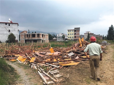 9月13日,曹再发占用一片国有土地建起的房屋被拆除,留下一片废墟。