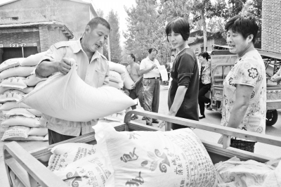 图为9月13日,聊城市茌平县贾寨镇杜沟村,村民忙着将领到的小麦良种装车。