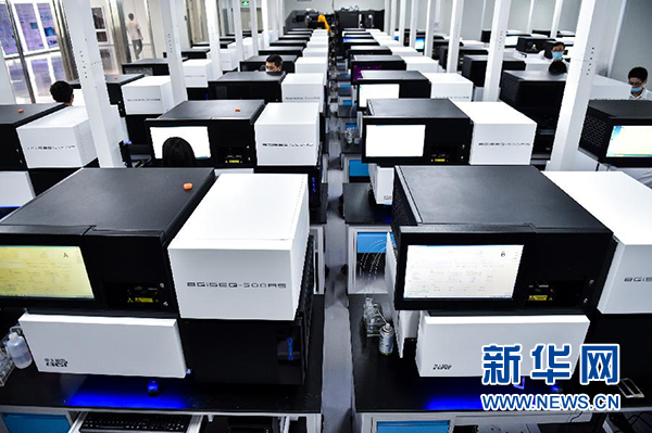 国家基因库的150台基因测序仪(9月6日摄)。新华社记者毛思倩摄