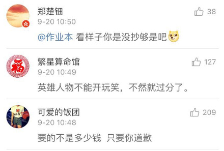 就在@作业本道歉微博的热门转发里,我们听到了这样的杂音: