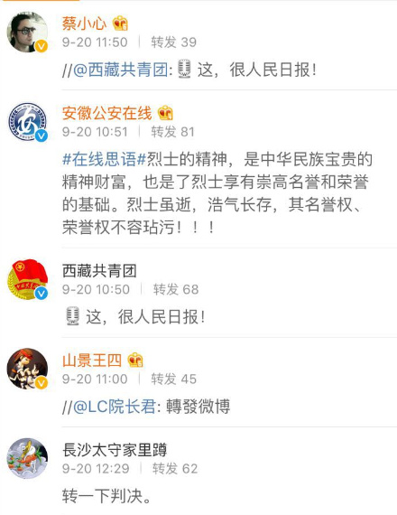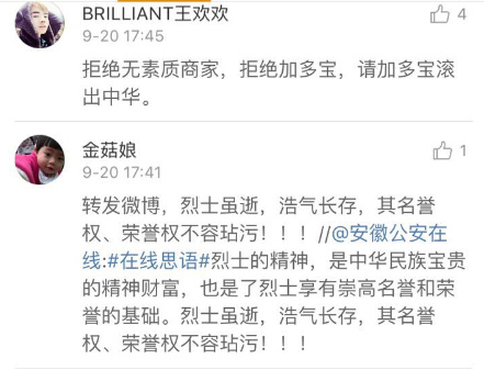 当时,共青团的多个官方微博账号也纷纷发声反对这种基于侮辱人民英雄进行的恶意营销行为。