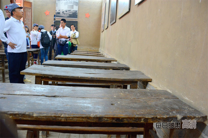红军大学旧址中陈设的课桌。(每日甘肃网记者韦德占/摄)