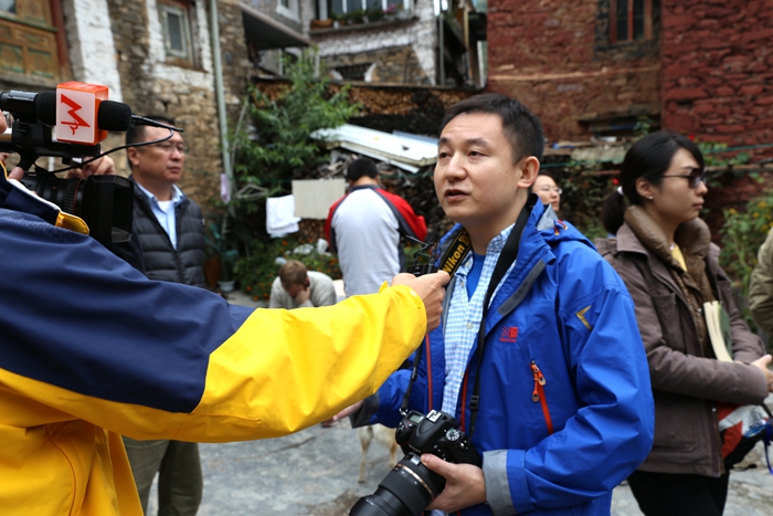 新华网记者汪亚在在小金县采访。(中国网信网郭子涵 摄)