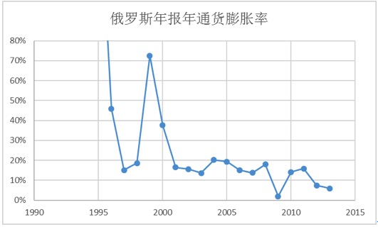 1992年初,俄罗斯开始实施休克疗法,实行自由主义的华盛顿共识政策,导致俄罗斯物价飞涨,当年通货膨胀率增加到1489%,而且长期维持在30%以上,其中1991-1995年间,通货膨胀率年年超过100%,日用品极度匮乏,经济崩溃,社会危机频发,到世纪末,叶利钦总统不得不宣布终止激进式的市场化改革[26]。