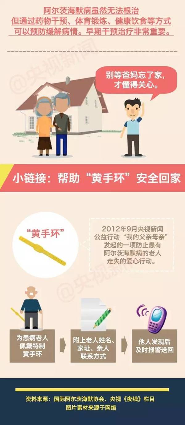 假如5年后你的祖父母、20年后你的父母、甚至40年后你的另一半不再注重穿着打扮,再也不会做饭,甚至经常迷路,你可能会伤心、懊恼甚至绝望,但只要有所准备,这些其实并没有那么可怕;当你爱的人有一天认不出你,你需要给予的是理解和耐心——这只是一种需要照顾的疾病,他/她还是那个你爱的他/她。(来源:央视新闻)