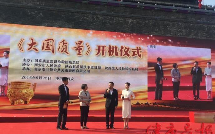 中国首部旨在唤起人们对质量问题的更大关注,激发人们对追求质量的更大热情,引导人们积极投身质量强国建设的纪录片《大国质量》22日在西安开机。中国国家质检总局副局长梅克保在开机仪式上说,该作品是在中国经济社会发展迈向“质量时代”大背景下应运而生的。