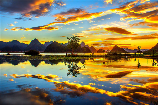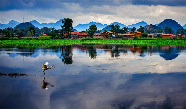 “普者黑”是彝族语,意思是盛满鱼虾的湖,位于云南省文山壮族苗族自治州。这里一座座散落的孤峰间,延绵环绕着的水路、万亩野生荷花、一望无际的桃园和世界最大的岩溶湿地,共同组成了一个独一无二的喀斯特山水田园风光。
