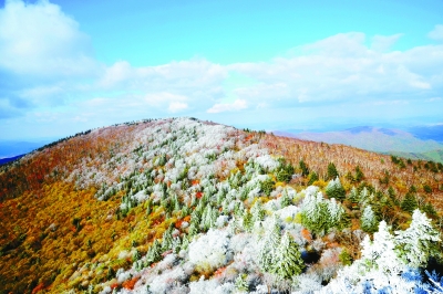 长白山深秋景观,层林染雪。李月安摄/光明图片