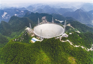 9月25日,世界最大单口径射电望远镜(FAST)在贵州省平塘县正式投入使用,这一500米口径的球面射电望远镜建设在喀斯特地貌天然形成的洼地中,被称为“中国天眼”。