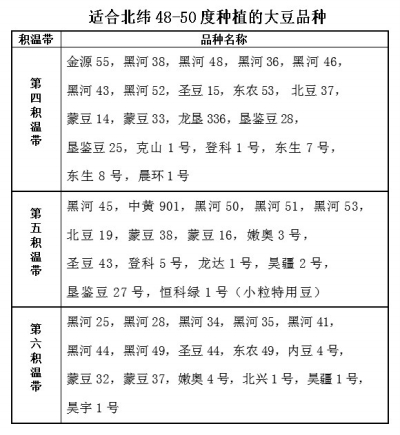 适合北纬48°-50°种植的大豆品种