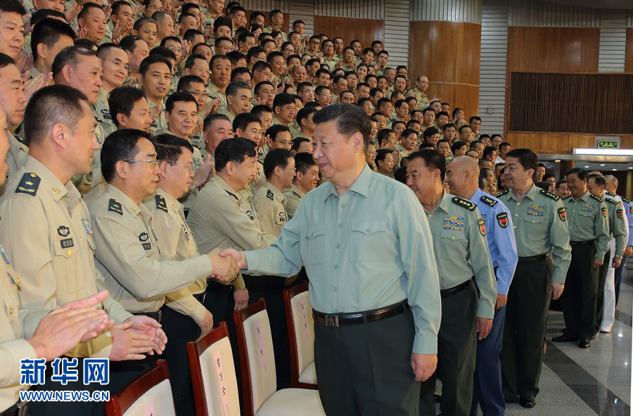 这是习近平亲切接见火箭军第一次党代会全体代表。新华社记者李刚摄