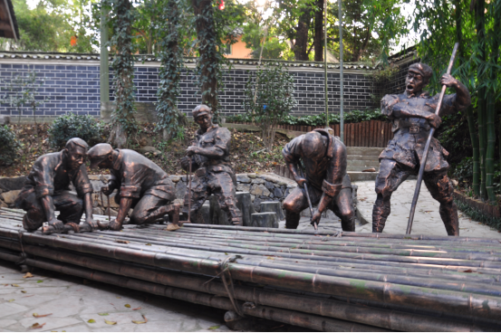 被国民党军队赶跑的当地民众,看到红军纪律严明,不拿群众一针一线,都回来帮助红军,砍竹子,扎竹筏,帮助红军渡江。