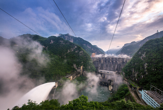 今天的乌江,波澜不惊,两岸高峡及蓝天白云倒映其中,秀美如画,多座百万千瓦级水电站建成,造福当地百姓。