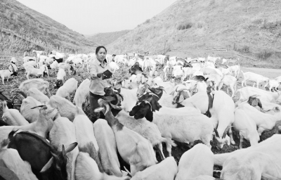 湖北省竹山县流转土地因地制宜发展养殖业,有效促进了农民增收致富脱贫。图为该县擂鼓镇西河村海平山羊养殖合作社养殖大户朱丽正在放养山羊。 朱本双摄