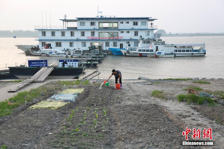 9月27日,在江西九江湖口县境内的石钟山下鄱阳湖畔,民众在裸露的湖堤上打理菜田,裸露湖堤变身“开心农场”。江西水文信息9月27日20时数据显示,江西鄱阳湖星子水文站水位为10.05米,逼近10米的枯水位。据江西省水文局预计,10月中旬,会接近8米的极枯水位。中新社记者 姜涛 摄