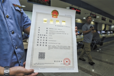 “我上周五开始申请,先在网上提交申请,下午又补充些材料,今天就领到了营业执照。”朱堃说,上周他刚了解到新政策,上周四开始准备申请材料,没想到不到3天就领到了营业执照。