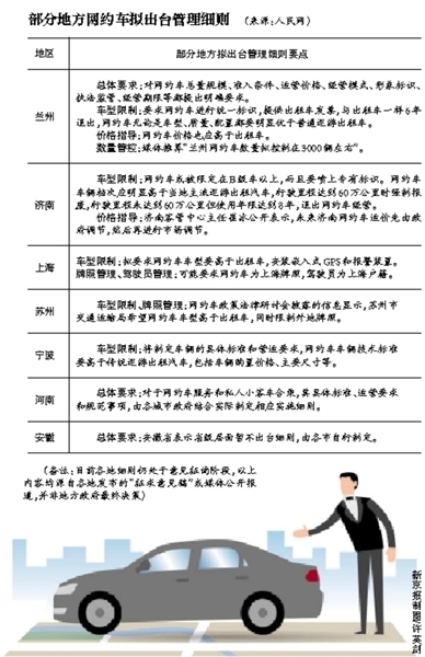 网约车新政虽然还有一个月就要实施,但各地正在有条不紊的制定细则。记者了解到,此前已经有济南、兰州运输管理部门透露了网约车管理细则的部分内容。近日,山东菏泽交通主管部门也透露了当地网约车管理细则,江苏省出台了全国首个省一级的落地细则。