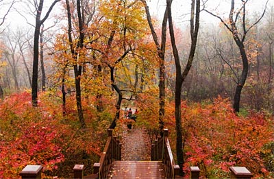位于丹东市宽甸满族自治县境内,这里森林覆盖率高达96%,是辽宁省十佳森林公园之一。每年的9月中旬-10月下旬,万山红遍,层林尽染,9月的天桥沟枫叶节都吸引了众多游客和摄影爱好者到此采风。这里的红叶品种之多,分布之广极具特色,被誉为中国枫叶最红最艳的地方。