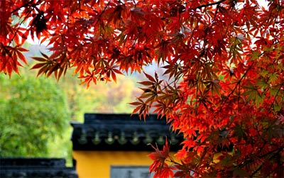 位于苏州市吴中区木渎镇,有“吴中第一山”的美誉,以“红枫、奇石、清泉”三绝著称。山麓有成片枫林,大者年逾四百,秋日经霜,层林尽染,称“万丈红区”。这些枫香树,由于树龄不同,地势不同,其叶的色彩变化有先有后,有深有浅,甚至出现绿丛中一株红,非常奇趣。