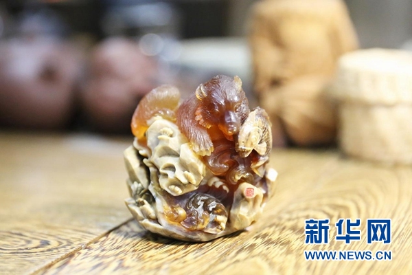 陈焕升琥珀雕刻作品(李旭摄)