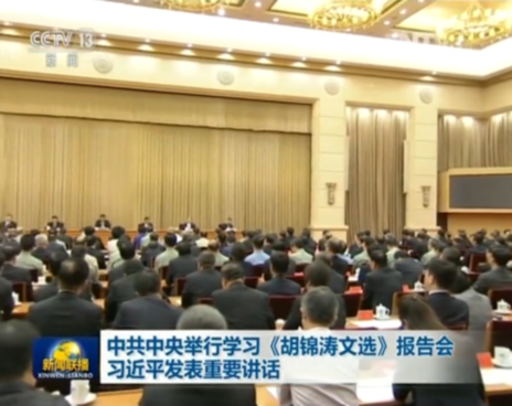 中共中央29日上午在北京举行学习《胡锦涛文选》报告会。中共中央总书记、国家主席、中央军委主席习近平在会上发表重要讲话。他强调,当前要把学习《胡锦涛文选》摆在党的思想政治建设和党员、干部理论学习培训的重要位置,通过学习加深对党的十八大以来提出的治国理政新理念新思想新战略的理解,继续开拓创新,继续奋发进取,为实现“两个一百年”奋斗目标、实现中华民族伟大复兴的中国梦而不懈奋斗。