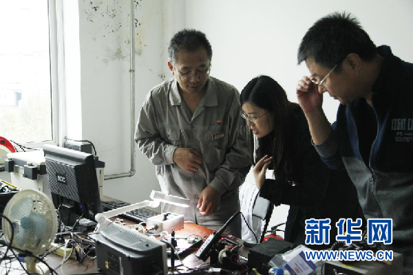 中国石油天然气集团公司下属的抚顺石化工程建设有限公司信息化应用研发中心负责人,抚顺市沈抚新城机器人及智能装备产业特聘顾问刁克剑为记者讲述“机器人”的电路板。中国网记者李佳摄