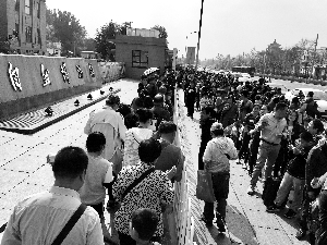 昨日上午十点半,在北京自然博物馆门前等待进馆参观和现场预约观众近千人排队,很多北京本地游客见此场景选择改日再来。北京晨报记者 王巍/摄