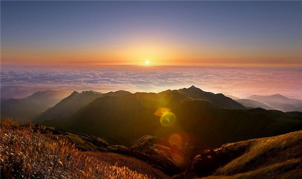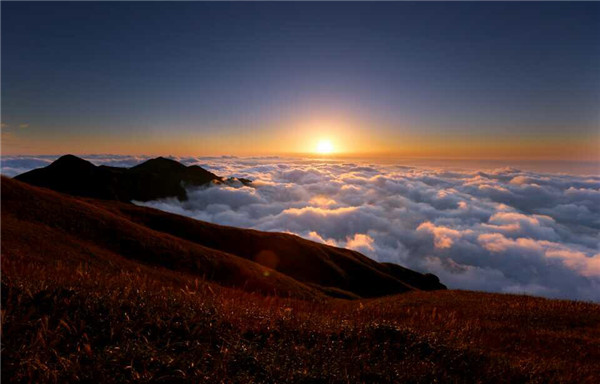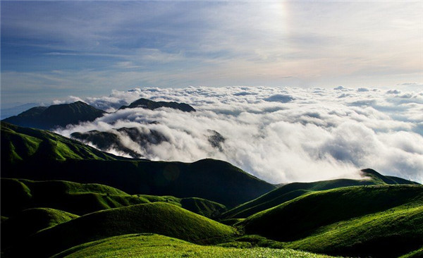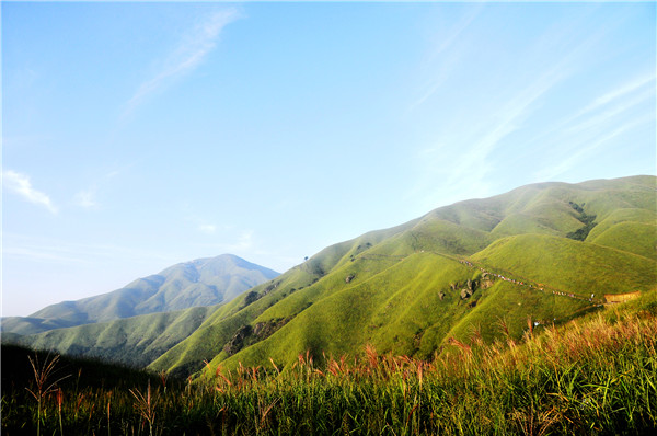 武功山国家地质公园位于江西省中西部,风光旖旎,景色秀丽,云浮山顶,波澜壮阔。十万亩草甸绵绵于海拔1600多米的高山之巅,面积之广、海拔之高在世界同纬度名山中罕见,被专家称为“奇山伴草甸,天下一绝”。