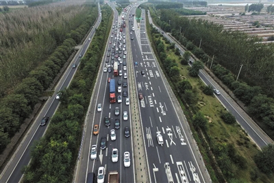 昨天高速路车流量可以说是全面上升,尤其到了下午,多条高速路进京方向都出现了车行缓慢的现象,密集的车流在高速上排队“爬行”。