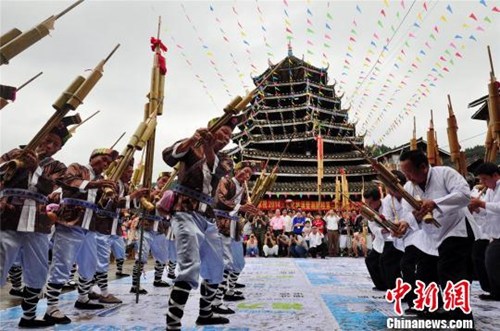 资料图:广西侗乡三江老人演绎民俗度重阳。杨春茂 摄