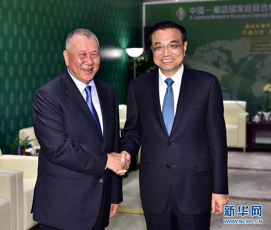 10月10日,国务院总理李克强在澳门会见全国政协副主席何厚铧。 新华社记者 李涛 摄