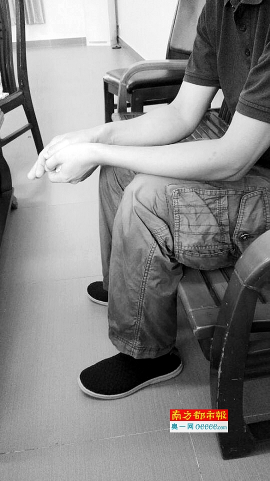 自闭症孩子家长谢先生谈及朱某投江事件,手里握着擦泪的纸团。南都记者 郭秋成 摄