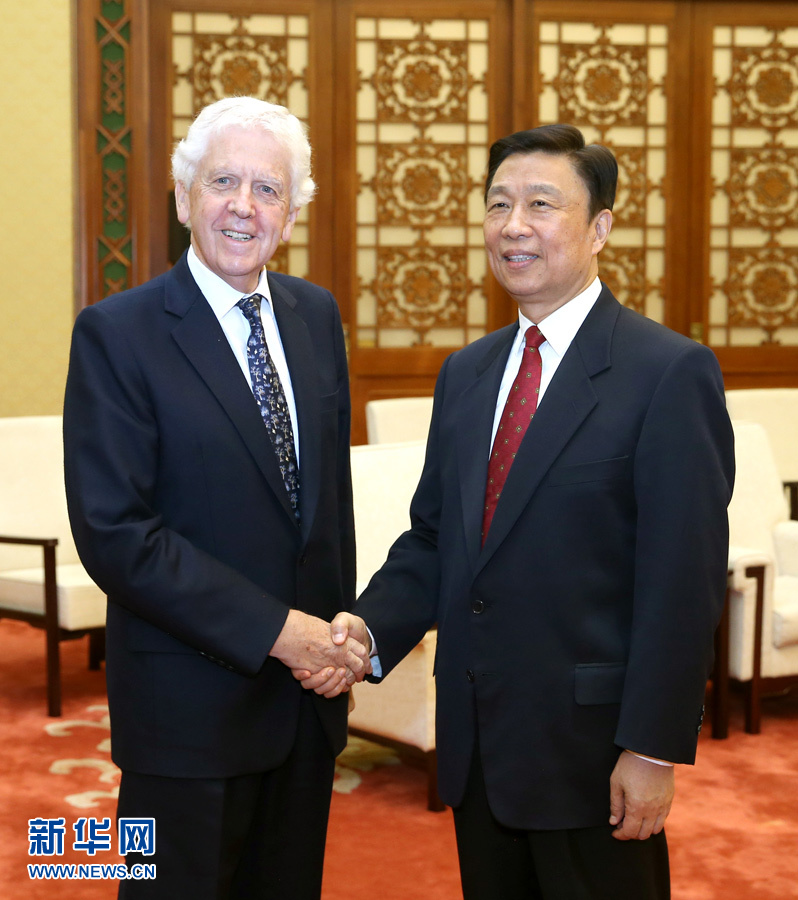 10月12日,国家副主席李源潮在北京人民大会堂会见应全国友协邀请访华的英国议会上院议员鲍威尔。 新华社记者马占成摄