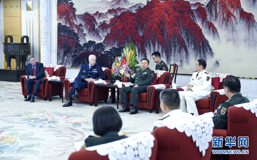 10月12日,中央军委副主席范长龙在北京会见来华参加中澳第19次防务战略磋商的澳大利亚国防军司令宾斯金和国防部秘书长理查森。新华社记者 张领 摄