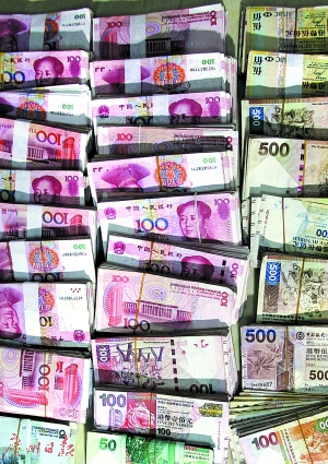 警方在惠州破获一宗地下钱庄案时缴获的涉案现金。