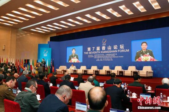 10月11日,由中国军事科学学会和中国国际战略学会联合主办的第七届香山论坛在北京开幕,并进行四次全体会议。中国国务委员兼国防部长常万全出席并致辞。 中新社记者 宋吉河 摄