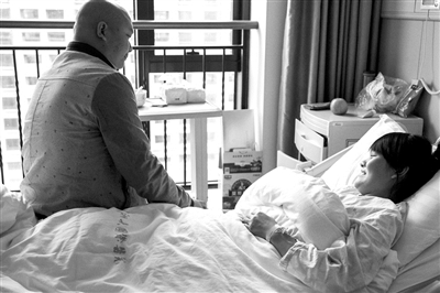 躺在病床上的杨丽很开朗,哥哥在一旁陪着她。记者 严嘉俊 摄