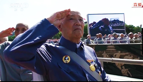 纪念反法西斯战争胜利七十周年阅兵式上敬礼的余新元